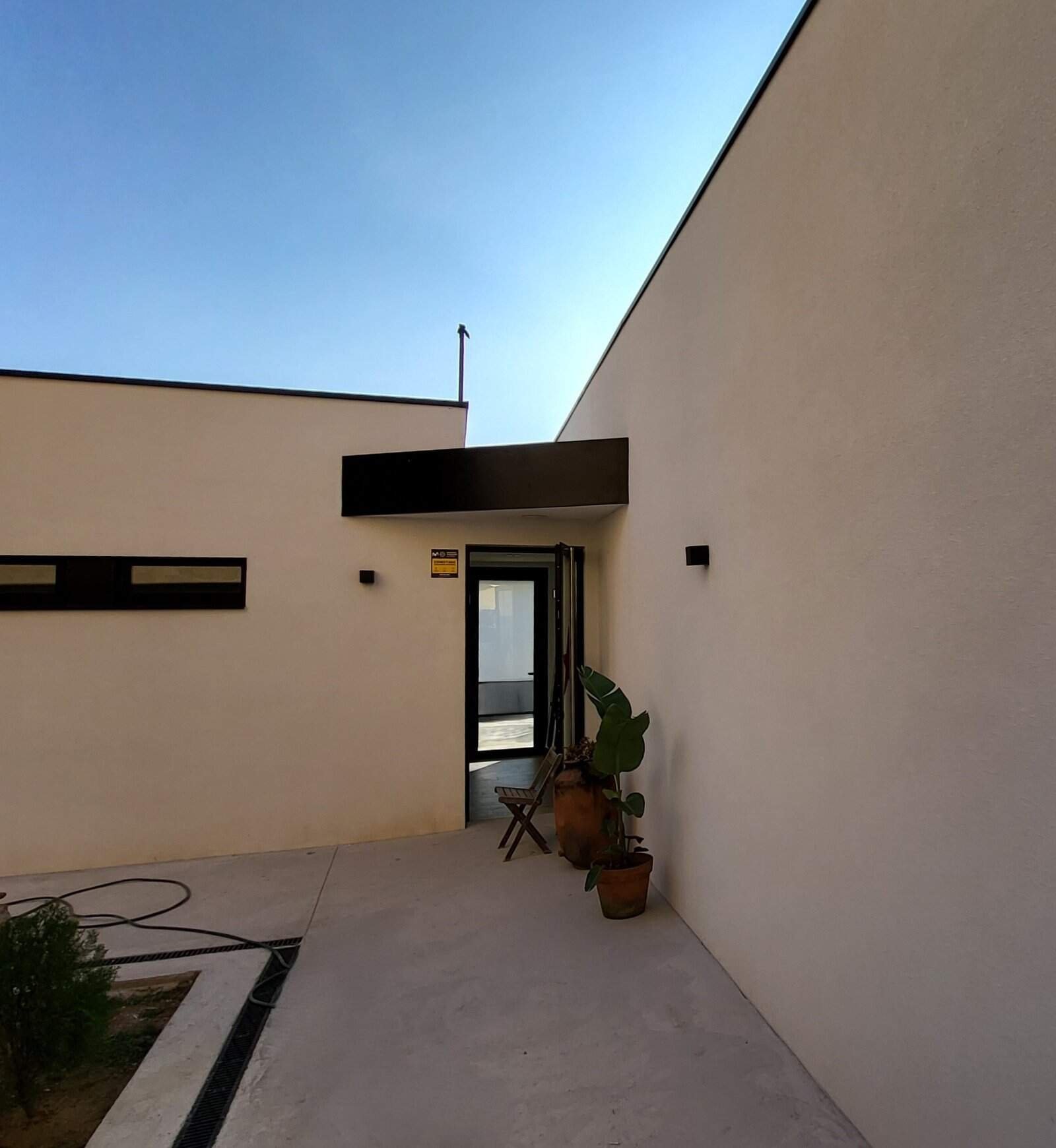 La façana incorpora aïllament per l’exterior per evitar ponts tèrmics, mentre que la coberta es resol amb teula plana invertida. L’habitatge disposa d’instal·lacions completes amb aerotèrmia, terra radiant, plaques solars i sistemes de renovació d’aire, assegurant confort i eficiència energètica.