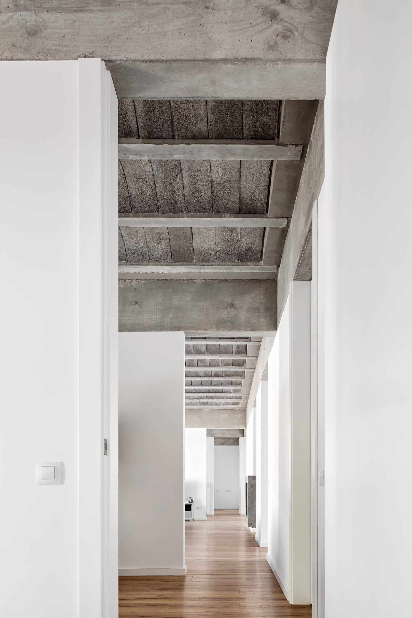 Un dels principals reptes del projecte va ser adaptar la construcció al desnivell del terreny, resolent la connexió entre el garatge i l’habitatge mitjançant una escala integrada. També va destacar la voluntat de deixar elements estructurals vistos, tant en sostres com en murs de càrrega, exigint una execució acurada.